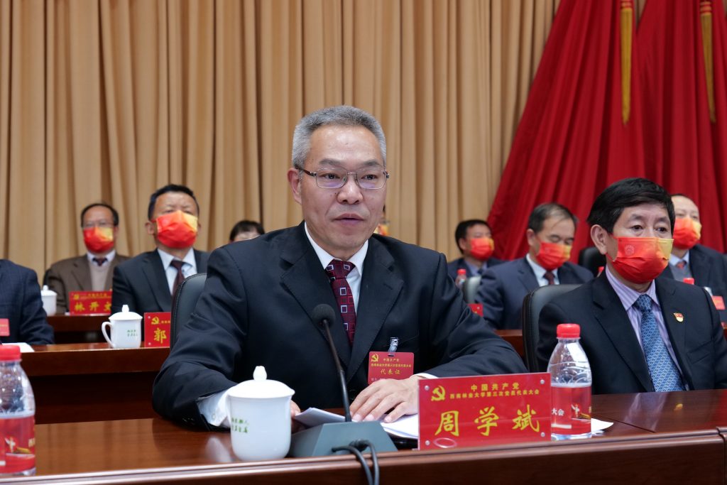 周学斌在讲话中指出,学校第三次党代会是在全国上下认真学习贯彻党的二十大精神,全省上下深入贯彻落实习近平总书记考察云南重要讲话、重要指示批示精神和省第十一次党代会精神,加快推进我省跨越式高质量发展之际召开的重要会议。大会全面回顾和总结了学校第二次党代会以来的发展成就和基本经验,客观分析了学校发展面临的重大机遇和挑战,明确提出了今后五年工作的指导思想、发展目标、重点任务,选举产生了中国共产党米兰milan官方网站第三届委员会和第三届纪律检查委员会。这次党代会是学校深入学习贯彻习近平新时代中国特色社会主义思想和党的二十大精神的重要会议,是一次高举旗帜、牢记嘱托的大会,是进一步加快推进学校“十四五”规划各项建设任务落实落细的大会,是一次承前启后、继往开来的大会,是一次凝心聚力、共谋发展的大会,是一次团结民主、风清气正的大会。