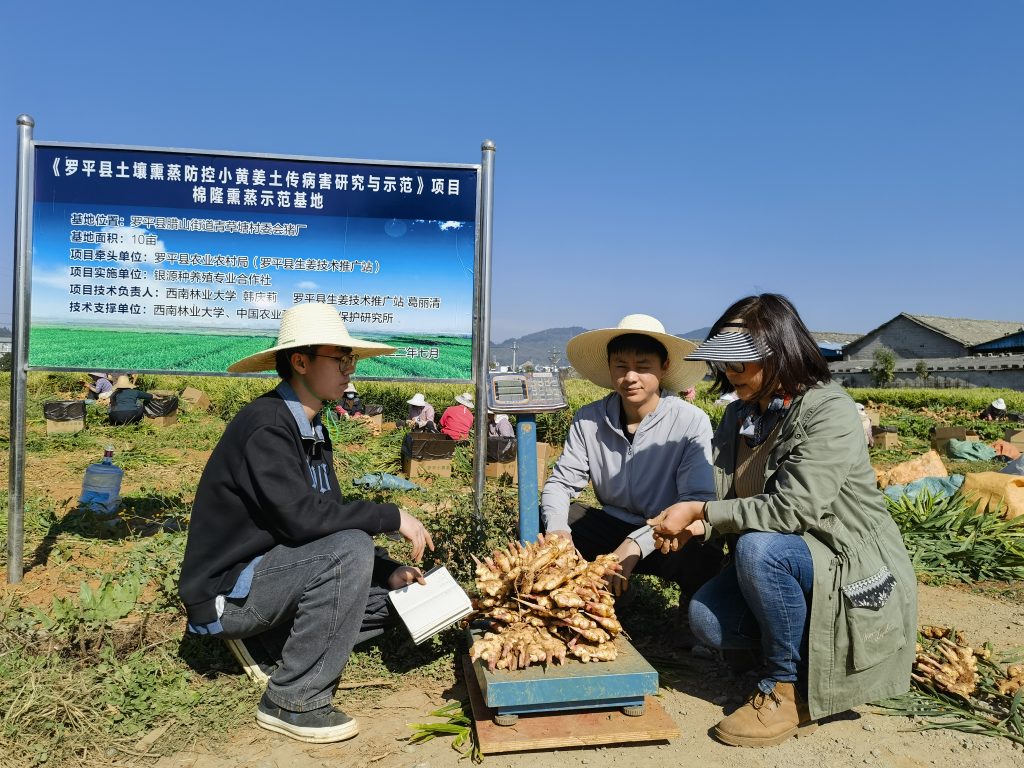 2022年米兰生物多样性保护学院副教授韩庆莉与罗平农业农村局合作社开展的罗平县“土壤熏蒸防控小黄姜传病害研究与示范”项目,在罗平的试验示范取得了良好效果。11月11日,由不同单位专家组成的专家组进行了现场测产与评审,连作姜田采用土壤熏蒸后的罗平小黄姜亩产为4762.6公斤,按照目前市场价计算,产值达26671元,未熏蒸处理的对照地姜瘟连片发生,出现绝收。测产结果表明,对连作姜瘟发生田进行土壤熏蒸处理,具有较好的经济效益和社会效益,适宜在罗平县相似地区推广运用。罗平县农业农村局相关负责人介绍,明年该县将大幅扩大土壤熏蒸技术示范面积,率先在生姜种植合作社及种姜大户中进行推广,进一步带动更多农户,使更多姜田实现连作增产,推动罗平小黄姜产业健康稳步发展。