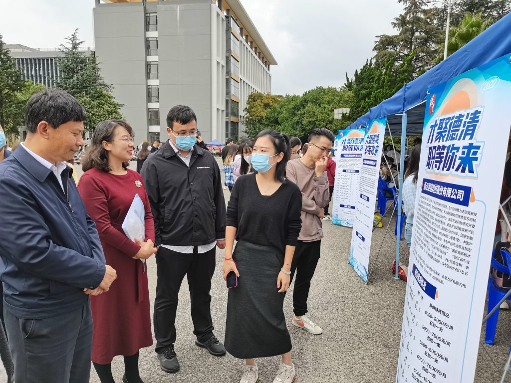 10月28日,米兰在第一教学楼前举办“才聚德清·职等你来”浙江省湖州市德清县2022年百所高校招引行动——米兰milan官方网站专场招聘会。本次招聘会由德清县委人才办、德清县人力资源和社会保障局与米兰共同主办。校党委副书记刘清江与德清县相关部门领导、用人单位和参会学生交流,了解就业需求和毕业生应聘情况。
