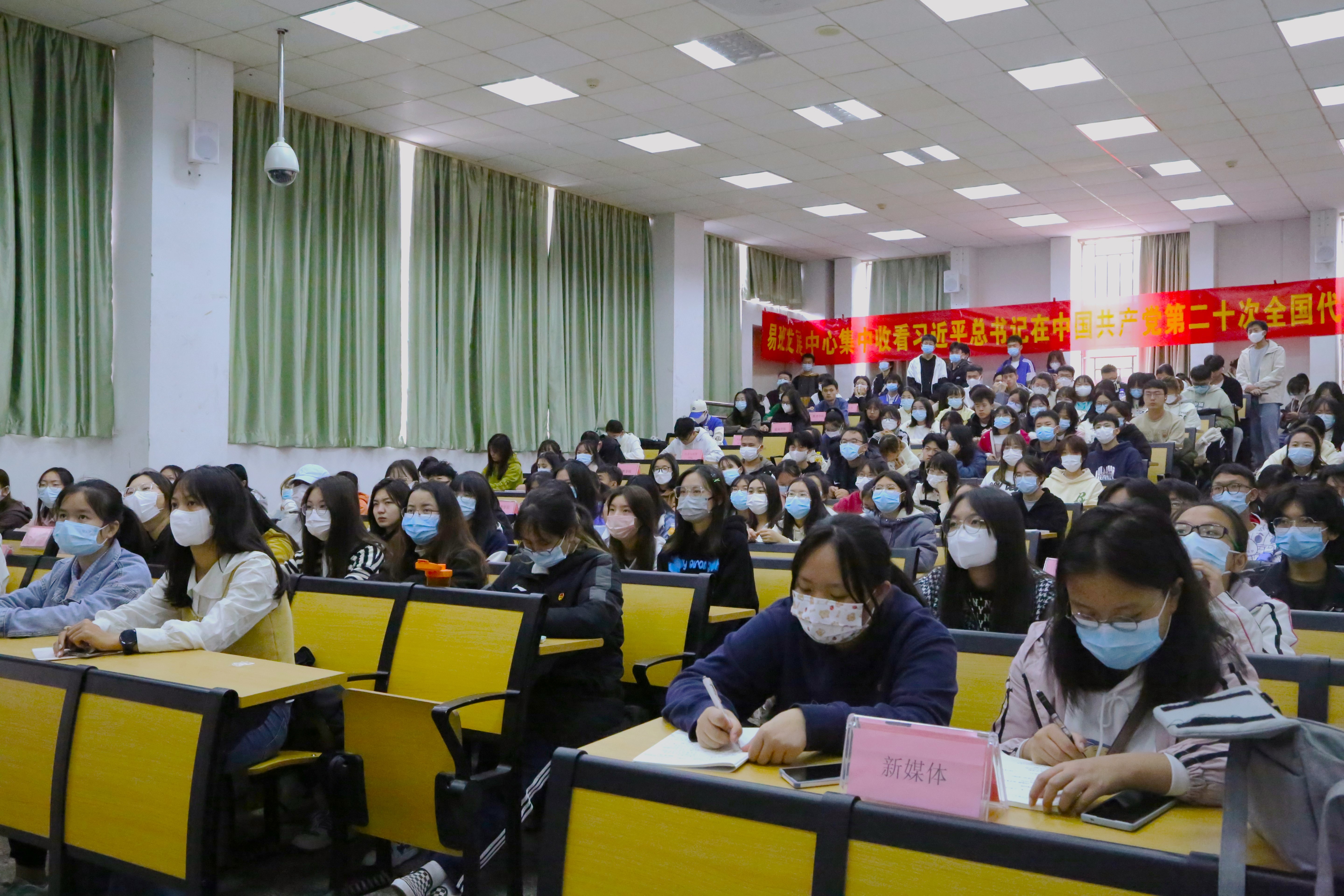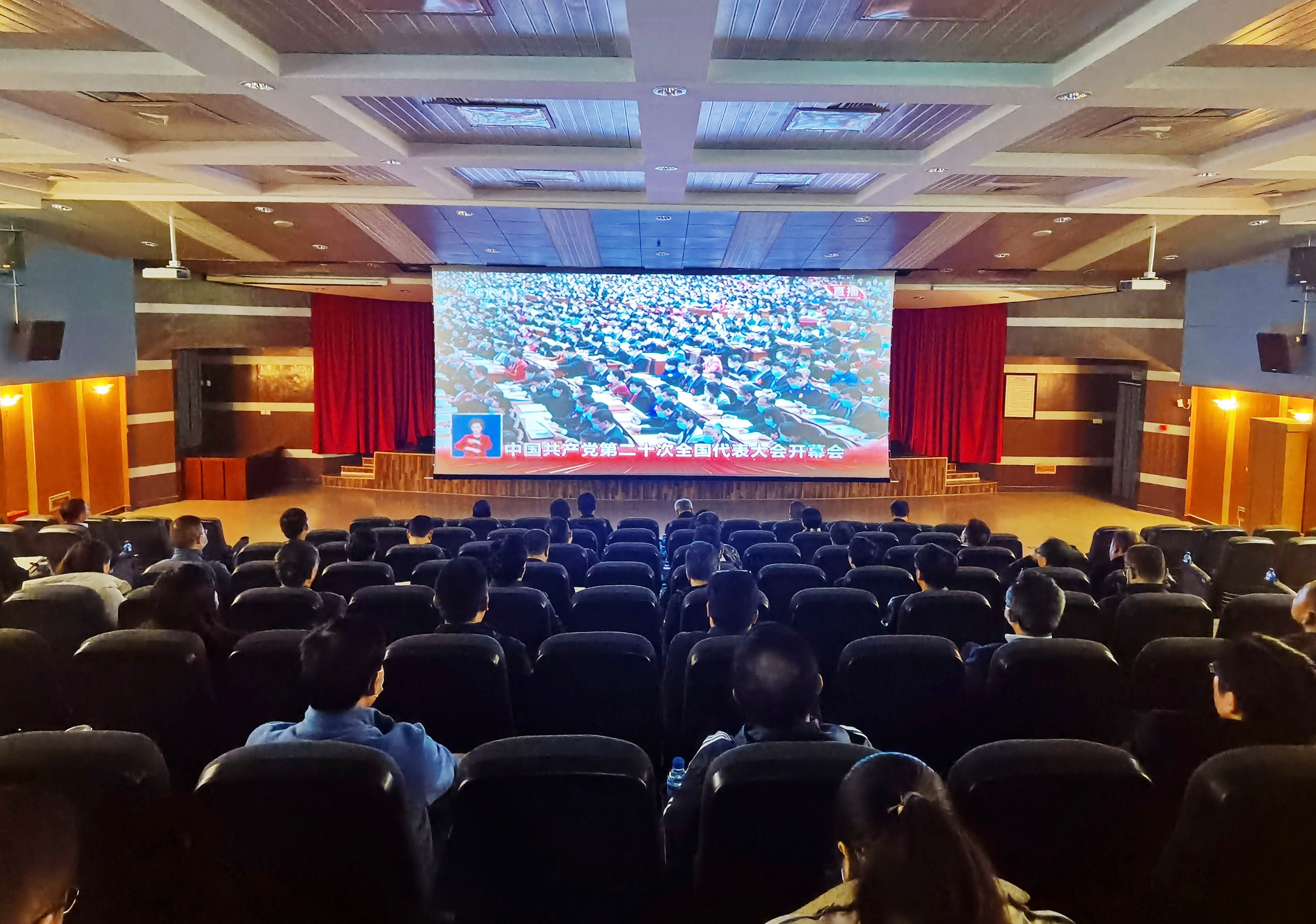 校领导,各部门、各单位、各院级党组织主要负责人在七彩影院集中收看,深刻领会党的二十大精神。
