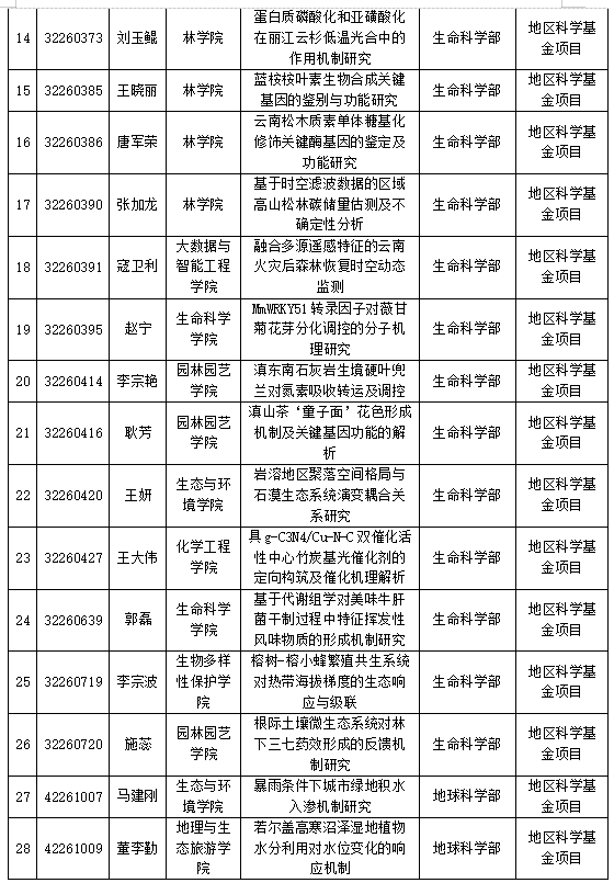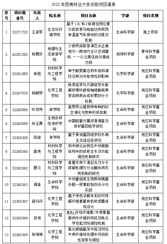 2022年度国家自科基金项目集中申报阶段评审工作全部结束,经过专家严格评审,米兰共计31项课题获得资助立项,按项目类别统计,面上项目1项,青年科学基金项目1项,地区科学基金项目29项;按学部统计,化学科学部2项,生命科学部23项,地球科学部3项,工程与材料科学部1项,信息科学部1项,管理科学部1项。研究领域覆盖天然产物化学生物学、作物与生物因子互作与生态调控、木材科学与技术、林产化学加工工程、森林经理学、地理学、食品科学与工程、土木工程、理论经济学等领域。