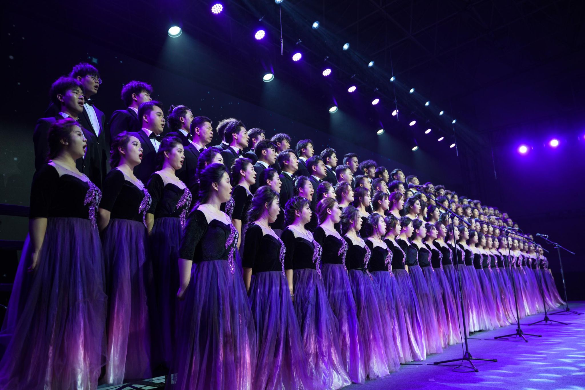 整齐嘹亮的歌声,各具特色的服装道具,激情飞扬的青春活力,师生们用歌声抒发情怀,借舞台演绎时代,带领观众追忆往昔峥嵘,唱响时代赞歌。整场比赛高潮迭起,赢得了观众的阵阵掌声。