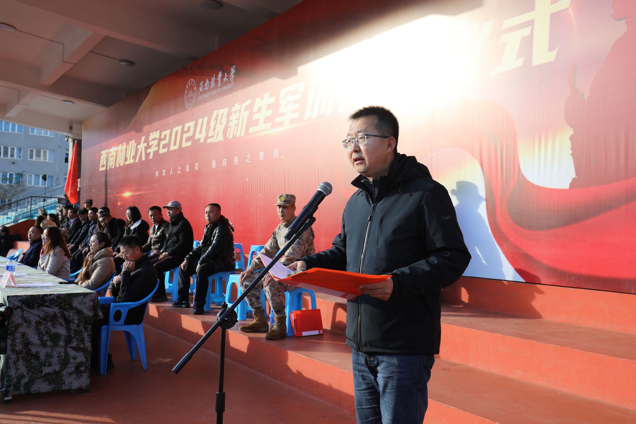 12月21日,米兰milan官方网站2024级新生军训开训仪式在北区足球场举行。校党委副书记李君、副校长郭华,军训团团长杨浩,学校各部门负责人以及各学院分管学生工作负责人、辅导员参加开训仪式。仪式由学生处(学生工作部、武装部)处(部)长徐高峰主持。