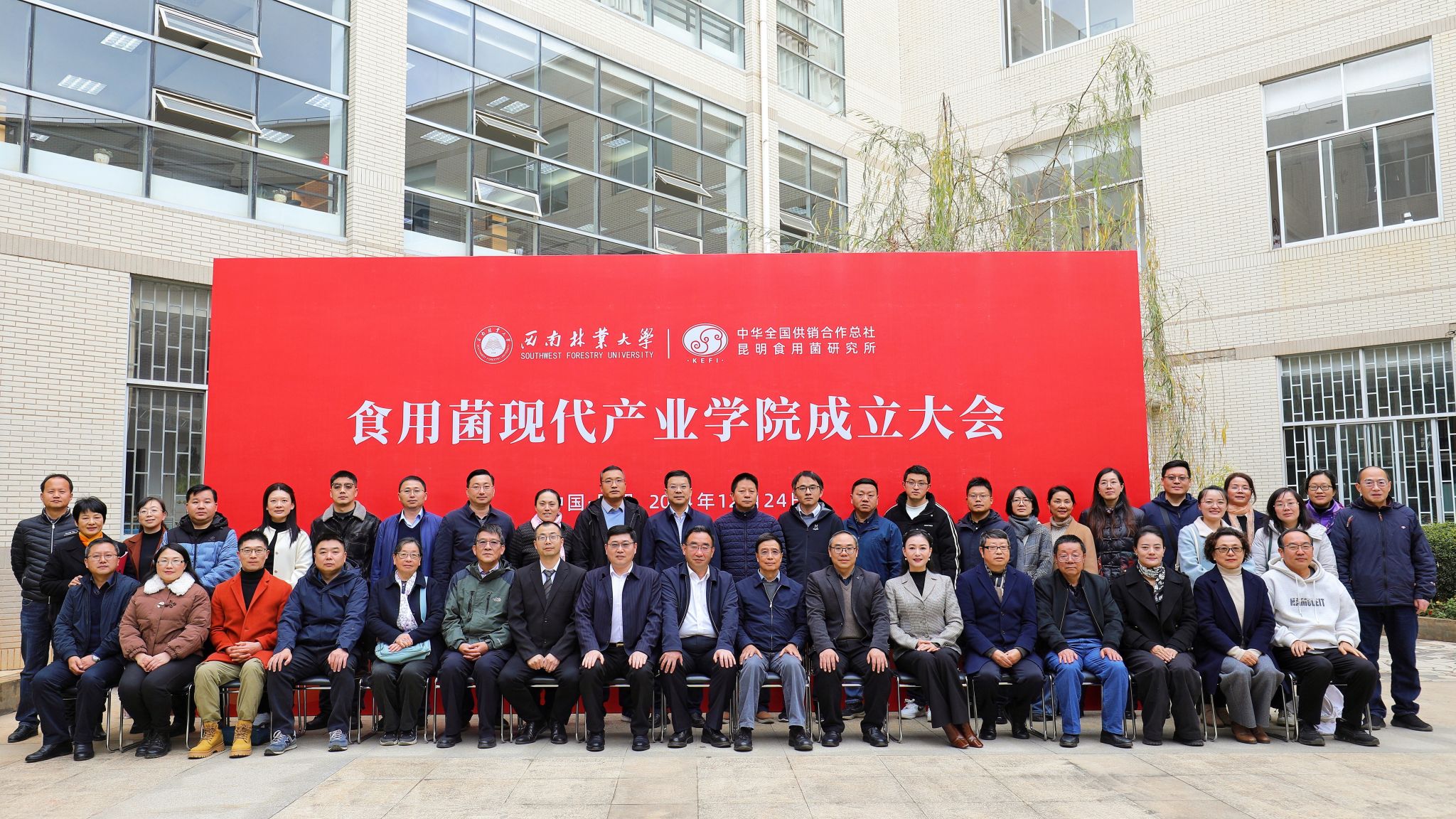 12月24日,米兰milan官方网站食用菌现代产业学院成立大会在学校世界茶叶图书馆举行。校长王卫斌,副校长杨思林,中华全国供销合作总社昆明食用菌研究所所长孙达锋、副所长华蓉,云南省林业和草原科学院教授杨宇明,云南省农业科学院生物技术与种质资源研究所研究员赵永昌,中国科学院昆明植物研究所研究员于富强出席成立大会。会议由学校生物与食品工程学院院长罗旭主持。