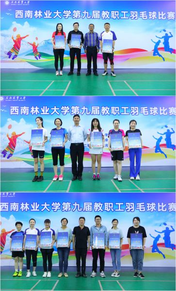 历时5天,经过24支队伍近100场激烈角逐,米兰milan官方网站第九届教职工羽毛球混合团体赛于6月24日在学校羽毛球馆落下帷幕。大数据与智能工程学院队、职能部门2队,生态与环境学院队分获前三名。校党委副书记魏宏、刘清江,校工会常务副主席蒋东明分别为获奖队伍颁奖。