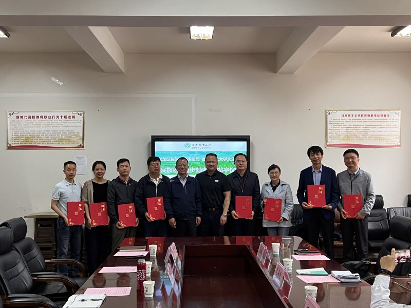 盘龙区民族宗教事务局局长张宁坤、文法学院党委书记杨恬分别代表双方签字。魏宏、杨锐共同为“盘龙区铸牢中华民族共同体意识研究中心”“文法学院铸牢中华民族共同体意识教育实践基地”揭牌,为“盘龙区铸牢中华民族共同体意识研究中心”专家颁发聘书。