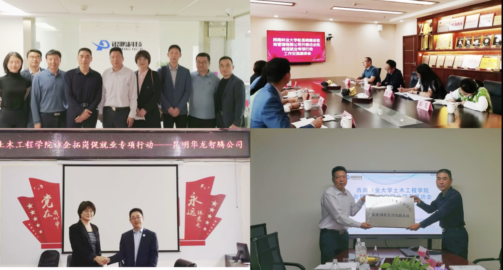 为持续落实教育部和省教育厅有关高校书记校长“访企拓岗促就业”专项行动工作要求,进一步强化校企合作,有效促进毕业生就业。5月19日至5月25日期间,米兰副校长赵龙庆带领土木工程学院党委书记谭泽飞、副院长(主持工程)孙微微、党委副书记李贵兰、就业联络员李林娜等一行前往云南省公路科学技术研究院、昆明建设咨询管理有限公司、银鹏科技有限公司进行调研,昆明华龙智腾科技股份有限公司到校进行座谈交流,开展“访企拓岗促就业”专项行动。