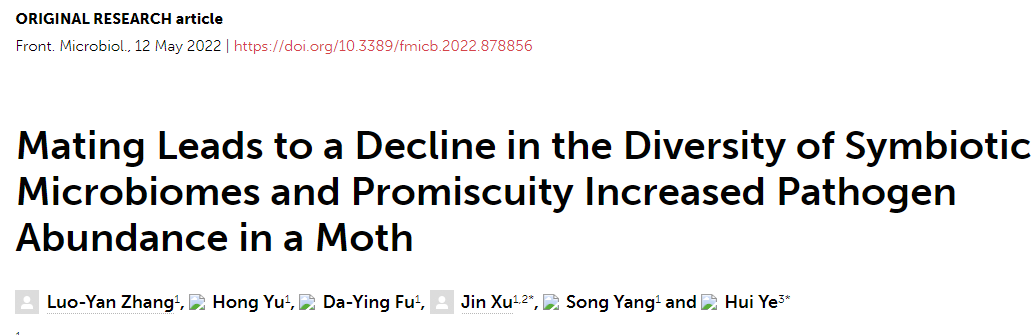 本研究创新点在于首次采用不同交配模式研究昆虫内生菌多样性,并首次在昆虫中发现交配可能引起病原菌和有益菌群多样性改变。相关成果于2022年被收录发表在《Frontiers in Microbiology》(中科院2区, IF: 5.640)。(来源:生物多样性保护学院/图/文:徐进 陈远书/审核:杨松/责任编辑:朱皓天)