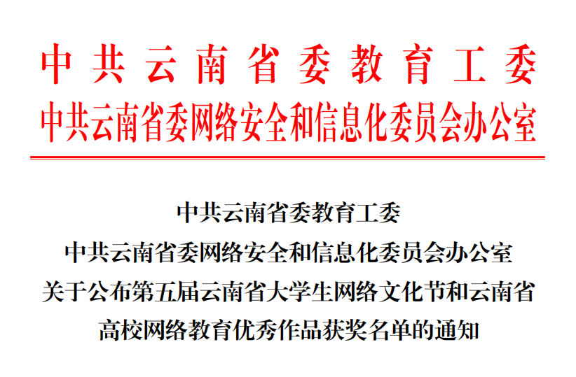 附件:关于公布第五届云南省大学生网络文化节和云南省高校网络教育优秀作品获奖名单的通知
