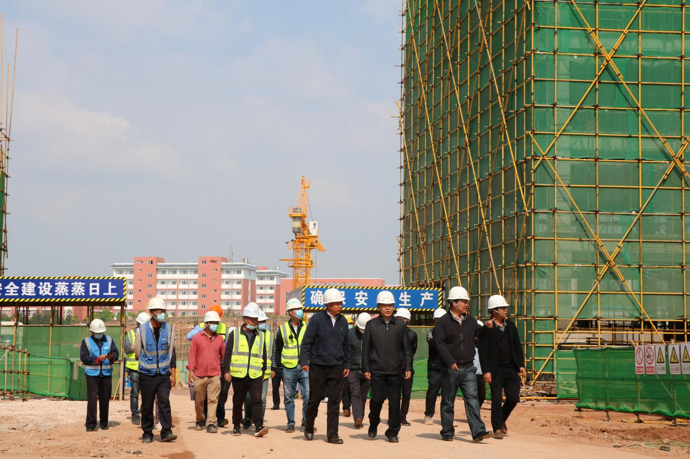 4月9日,校党委书记周学斌,副校长、石林校区建设指挥部指挥长赵龙庆,到石林校区建设工地检查指导工作。