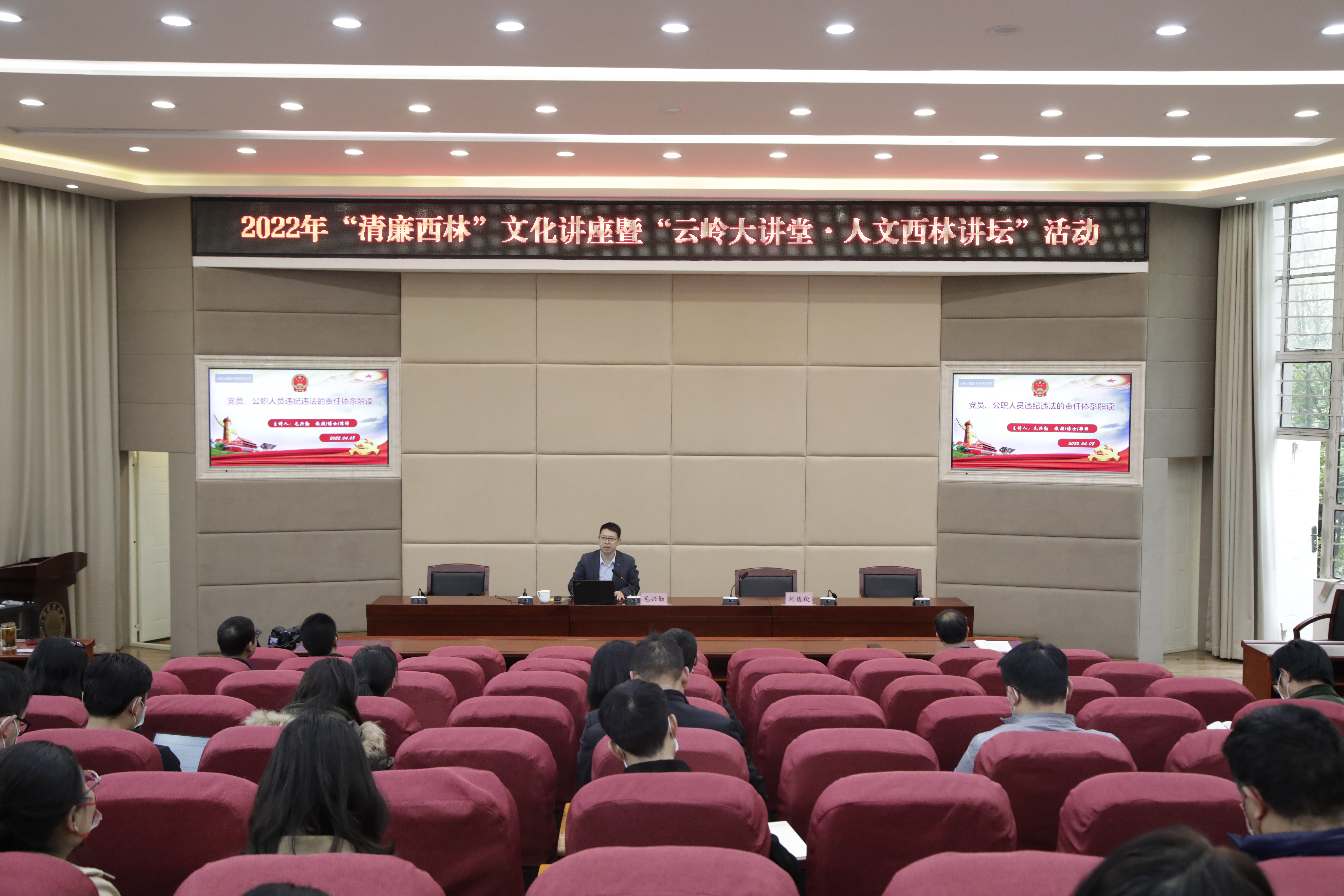 4月8日下午,米兰举办“清廉西林”文化讲座暨“云岭大讲堂·人文西林讲坛”活动,各二级单位负责人、办公室主任参加会议,校纪委副书记、纪检处处长刘德钦主持会议,并做“清廉西林”文化周活动动员讲话。云南师范大学教授毛兴勤应邀作了题为《党员、公职人员违纪违法的责任体系解读》专题讲座。