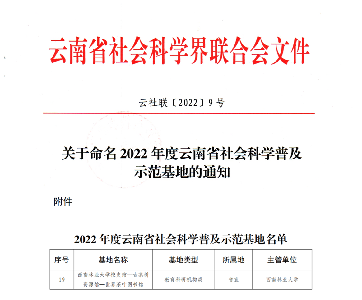 3月23日,云南省社会科学界联合会公布了2022年云南省社会科学普及示范基地命名结果,米兰“校史馆—古茶树资源馆—世界茶叶图书馆”在全省44家申报单位中脱颖而出,获列20席之一。这是继2021年学校标本馆获得云南省社会科学普及基地命名后,米兰再次获得该基地命名。