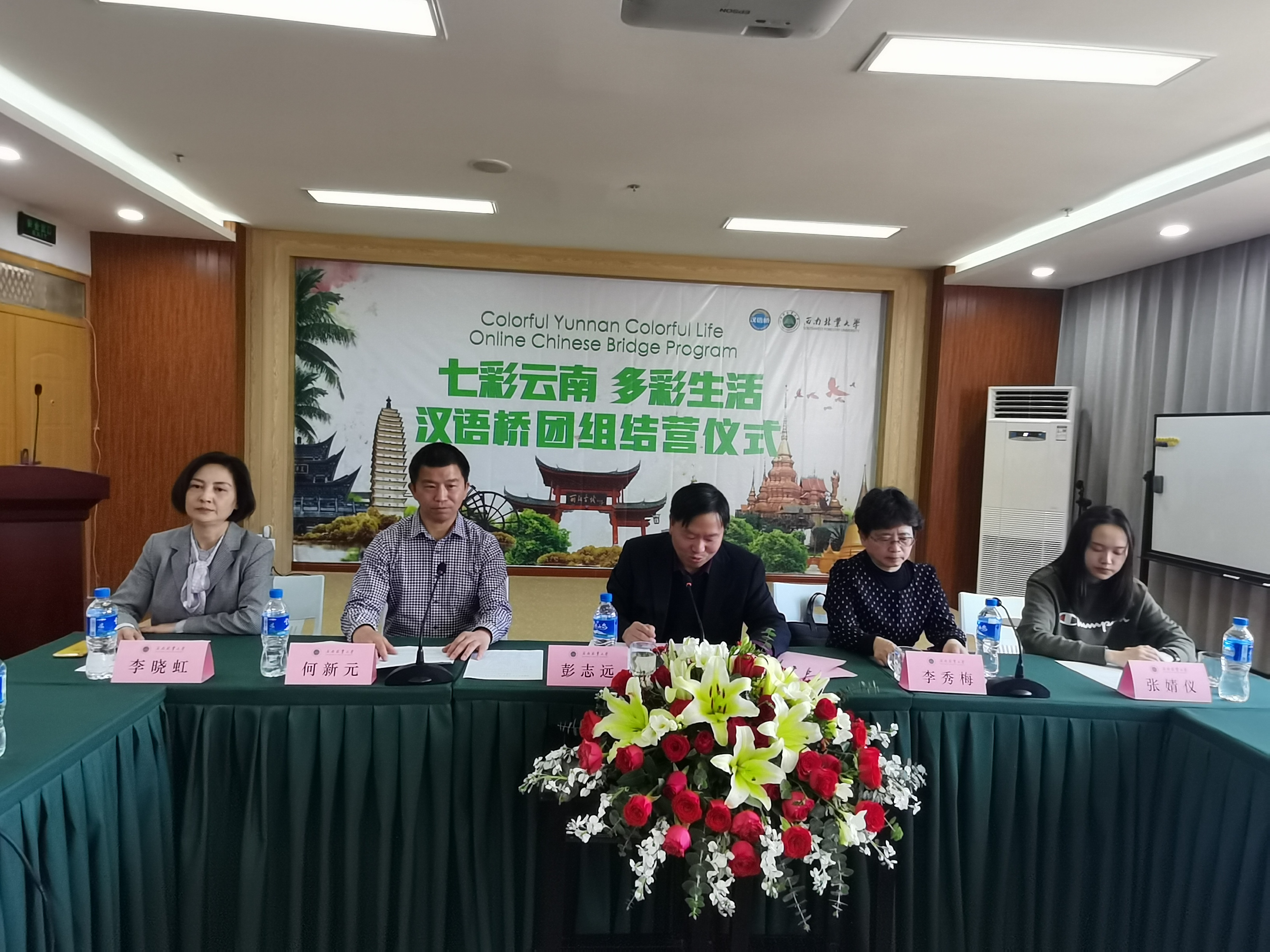 3月11日,由中国教育部中外语言交流合作中心主办、米兰milan官方网站承办的“七彩云南·多彩生活”汉语桥线上团组春令营闭营仪式在国际交流中心成功举办。米兰milan官方网站副校长彭志远、外国语学院院长李秀梅、对外合作交流处张靖仪应邀出席了本次闭营仪式。泰国马哈沙拉堪皇家大学人文社会科学学院院长给底功·班荣卜博士(Dr. Kittikorn Bamroongboon)、马里巴马科阿斯基亚中学孔子课堂外方院长西索科(Fayera SISSOKO)及相关教师、近200名来自泰国、越南、老挝、孟加拉国、马里、巴基斯坦等中文学习者线上出席了本次活动。国际学院全体教职工及在校部分留学生参加了本次活动,闭营仪式由国际学院院长何新元主持。