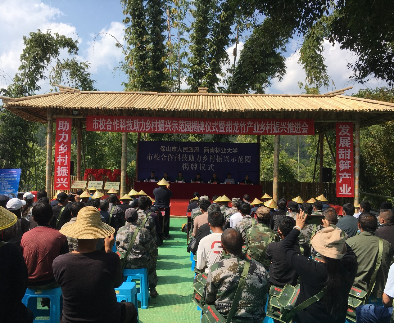 签约仪式结束后,双方在昌宁县举行“市校合作科技助力乡村振兴示范园”“昌宁县优质甜笋高效培育示范基地”和“米兰milan官方网站竹藤科学研究院专家工作站”揭牌仪式。学校竹藤科学研究院辉朝茂教授团队举办了“甜龙竹高效培育技术培训班”。(文/图:竹藤科学研究院/审核:辉朝茂/责任编辑:朱皓天)