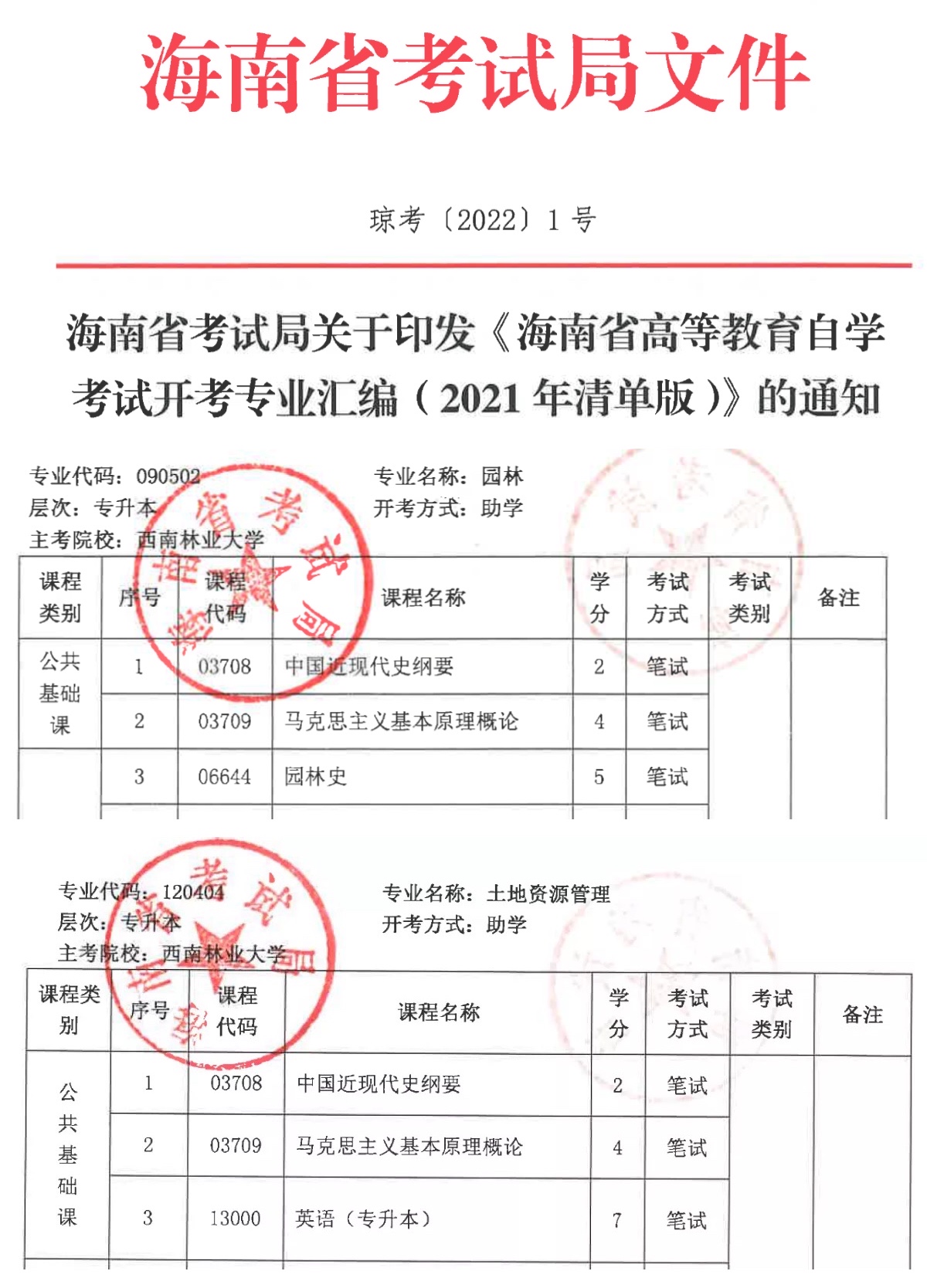 在学校的大力支持下,继续教育学院结合米兰办学特色和海南省省经济开发建设的人才需求的需求,2022年1月,米兰向海南省考试局申请的园林、土地资源管理自学考试开考本科专业获得批准。