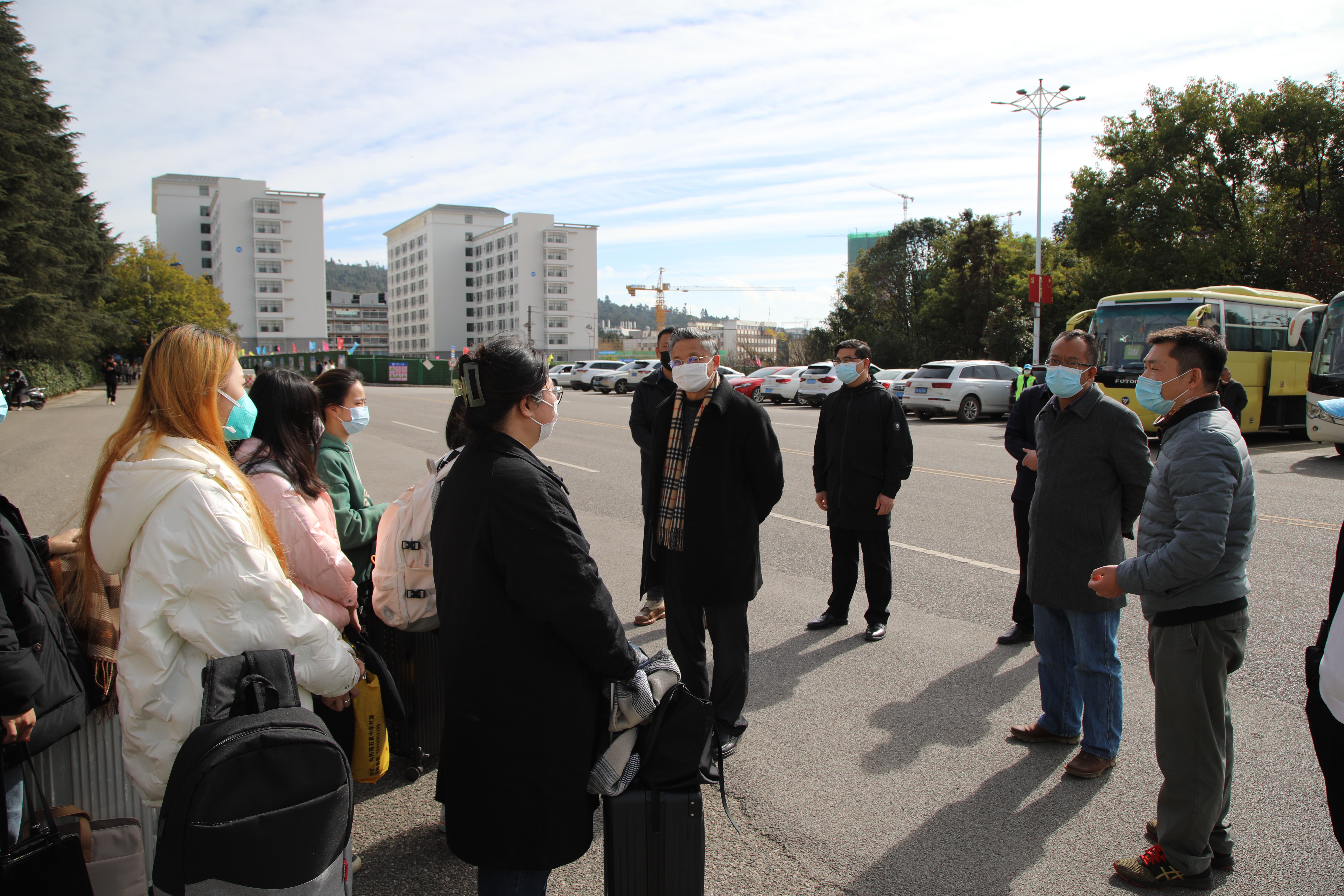 走访检查中,张昌山一行走访看望了核酸检测师生、工作人员和寒假回家学生。张昌山对暖心送站表达了肯定,对积极参加核酸检测筛查的师生表达了慰问。在1号门和学校安排的统一送站乘车点看望了回家学子,他要求学子回家途中要做好个人防护,把疫情防控意识要牢固在心中,实践在行动中。“平安让学校和家之间没有了距离,广大学子是学校的一份子,更是国家、社会的一份子,要树牢疫情防控意识,牢固疫情防控规则,不做旁观者、不做看戏人,要做参与者、践行者”。(文:林朋/图:姜超超 王文慧/审核:杨绍辉/责任编辑:朱皓天)