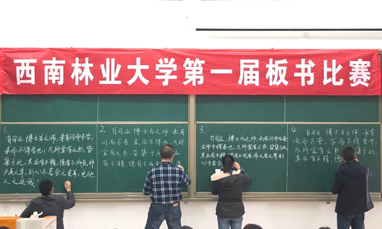 本次比赛自通知发布以来在广大教师中反响热烈,共有47名来自不同学院的教师参加本次比赛,参赛教师投入极大热情以笔会友,字体隽秀优美,充分展示了粉笔板书之美。比赛书写内容摘自《党的十九大报告》《在庆祝中国共产党成立100周年大会上的讲话》《共产党宣言》《林业大学生之歌》等,展现了新时代高校教师的精神风貌。