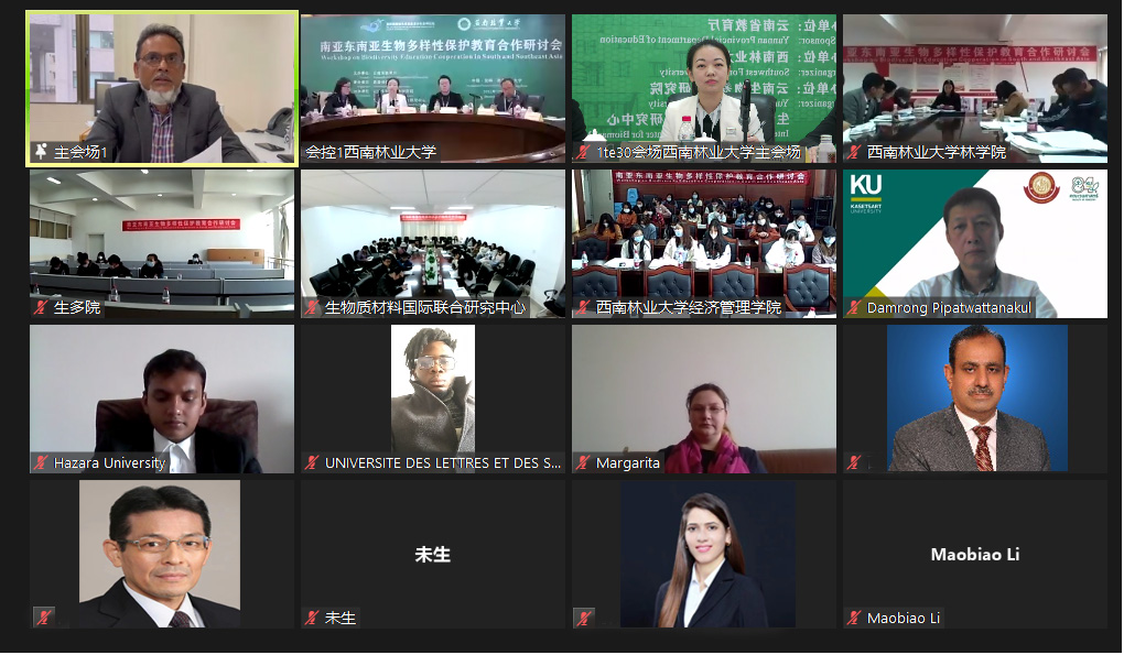 12月9日,学校举办南亚东南亚生物多样性保护教育合作研讨会,副校长彭志远、巴基斯坦哈扎拉大学校长贾米尔·艾哈迈德、省教育厅代表朱勤等出席并致辞,共有来自泰国、越南、巴基斯坦、孟加拉国、日本、埃及和中国等9个国家的专家和300余名师生在8个海内外分会场参加此次研讨会。