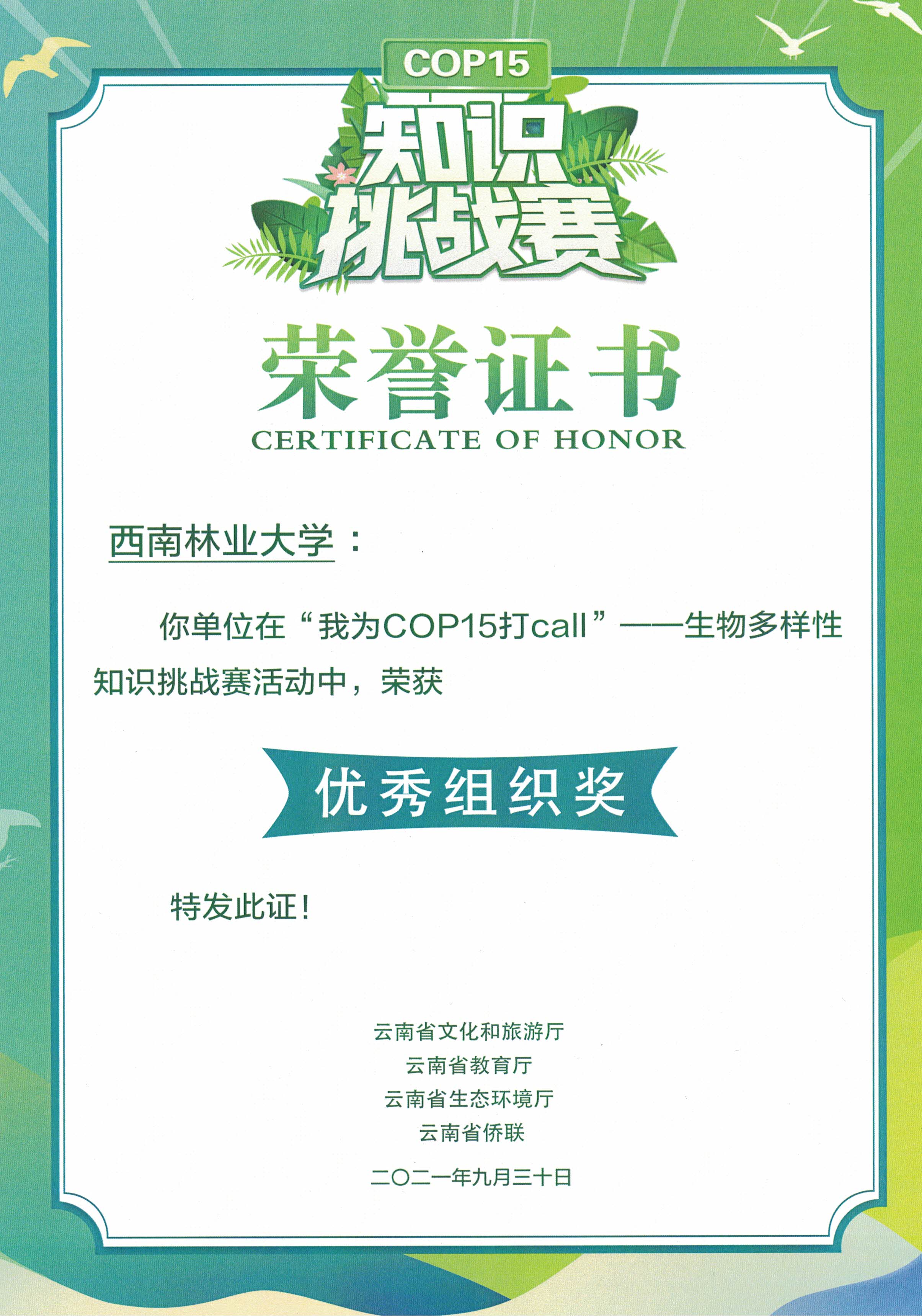 近日,由COP15云南省筹备工作领导小组办公室,中共云南省委宣传部、省委网信办主办,云南广播电视台承办的COP15系列赛事颁奖典礼在昆明举行。米兰milan官方网站在“我为COP15打call”——生物多样性知识挑战赛活动中荣获优秀组织奖。
