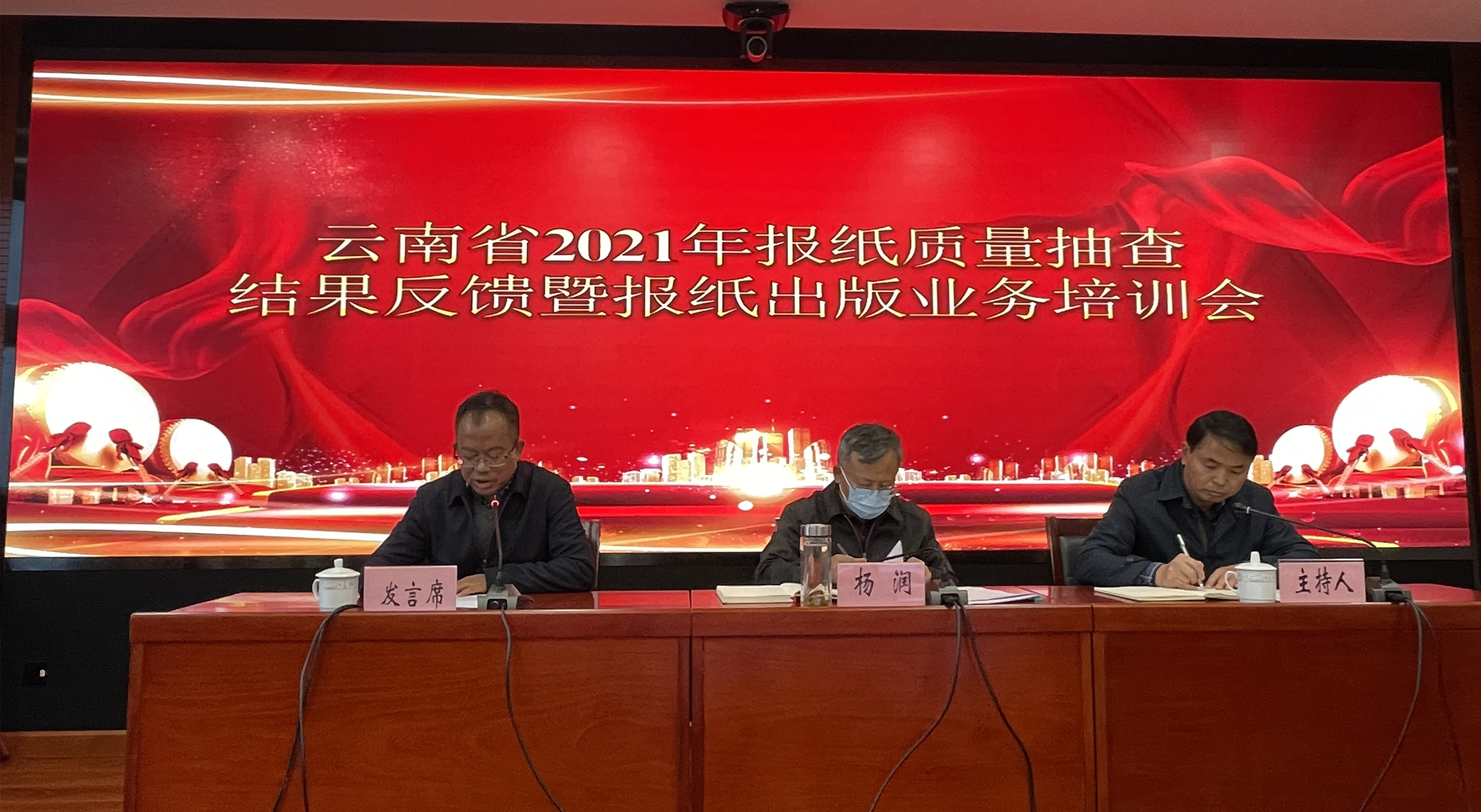 11月12日,云南省2021年报纸质量抽查结果反馈暨报纸出版业务培训会议召开。省委宣传部副部长、省新闻出版局(版权局)局长杨润出席会议并讲话。校党委副书记魏宏代表学校在会上作办报经验交流。