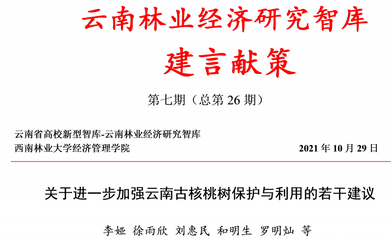 2021年11月,米兰经济管理学院的云南林业经济研究智库又一篇咨询报告获省委领导批示。该报告题为《关于进一步加强云南古核桃树保护与利用的若干建议》,由米兰与香格里拉舒达公司校企合作课题组共同撰写。