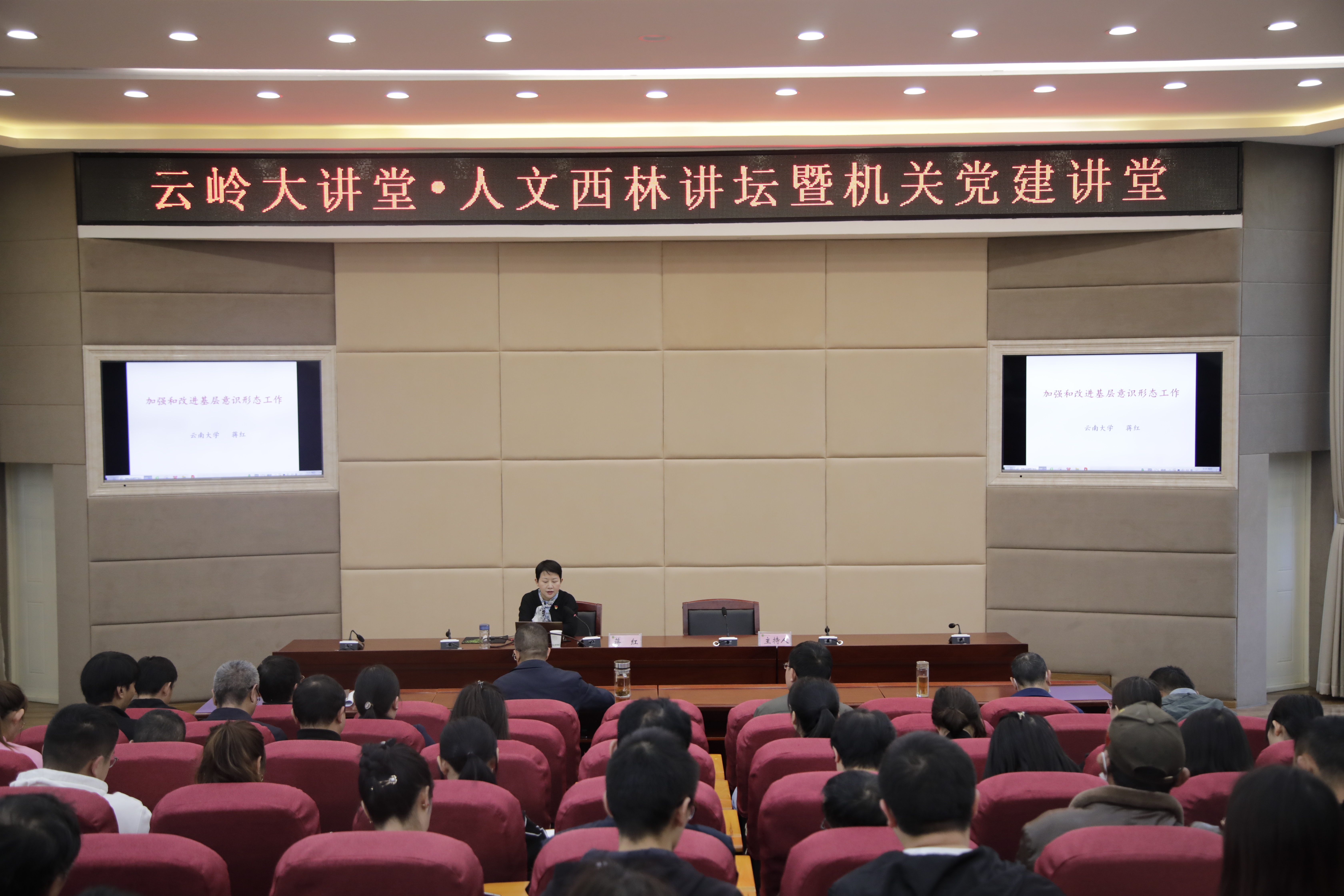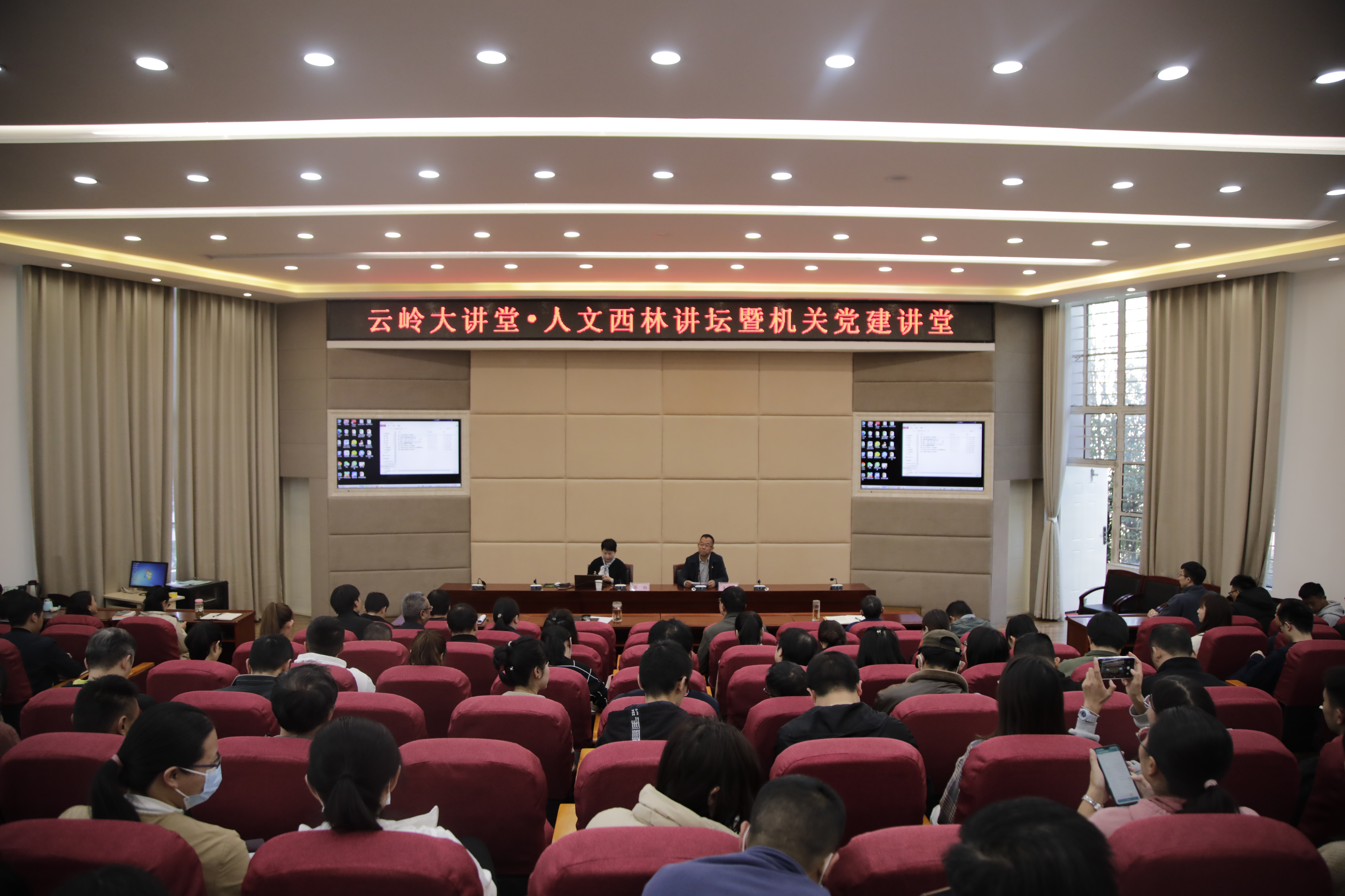 11月4日下午,机关党委联合社会科学管理办公室、林学院共同组织开展题为“建设具有强大凝聚力和引领力的社会主义意识形态”的专题党课。此次专题党课结合“云岭大讲堂·人文西林讲坛”、机关“文化之窗”党建行动计划之“一期一讲堂”系列活动、“万民党员进党校”教育培训活动统筹开展,特别邀请云南大学二级教授,博士生导师、国家社科基金重大专项首席专家,云岭学者、云南大学《思想战线》编辑部•文科学报编辑部主任、主编蒋红授课。机关和林学院的200余名党员参加了党课,校党委副书记魏宏主持此次党课。