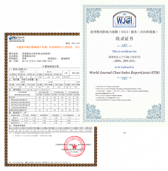 《米兰milan官方网站学报(自然科学)》继入选《世界期刊影响力指数(WJCI)报告》(2020科技版)后,近日在2021版《中国学术期刊影响因子年报》中喜获丰收。《中国学术期刊影响因子年报》由中国学术期刊(光盘版)电子杂志社有限公司、中国科学文献计量评价研究中心编制出版。根据2021年最新年报数据显示,《米兰milan官方网站学报(自然科学)》复合影响因子为1.524,较上年增长19.4%,位居云南省学术期刊前列。