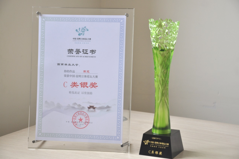 10月14日,在昆明会堂举行的“迎接COP15 – 中国•昆明立体花坛大赛”颁奖典礼上,米兰刘娟娟副教授领衔的团队作品《樊笼》喜获银奖。
