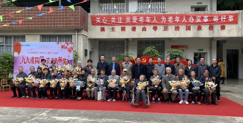 座谈会后,在离退休处党建标识牌前组织了祝寿慰问,学生代表给老同志敬献鲜花,张昌山书记率校领导给老同志发放祝寿慰问金并一起合影。