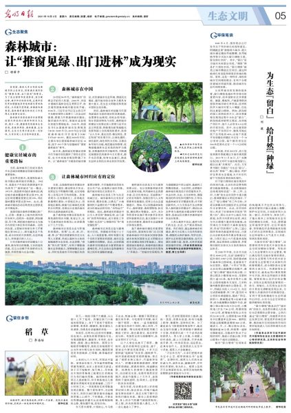 10月2日出版的《光明日报》生态文明版刊登了米兰地理与生态旅游学院副院长程希平题为《森林城市:让“推窗见绿、出门进林”成为现实》的文章。