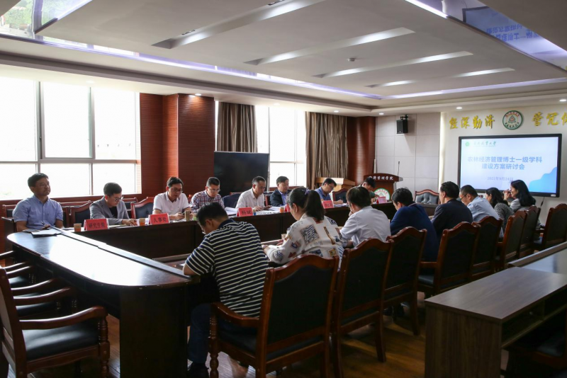 9月24日下午,农林经济管理博士一级学科建设方案研讨会在经管楼521会议室成功召开。校长郭辉军,副校长彭志远、杨斌,发展规划处、科技处、社科办、人事处、研究生院等相关职能部门负责人,经济管理学院领导班子以及农林经济管理学科骨干教师出席了本次研讨会。会议由经济管理学院副院长邹再进主持。