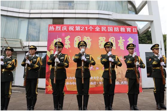 活动开始,所有人员高唱国歌,气势澎湃,之后向先辈沉重默哀一分钟,缅怀先辈,铭记历史,吾辈自强。在这特殊的日子里,举办国防教育日活动,对于每一位参与者,都有着重大的意义。迈向强国新征程,军民共筑强军梦。