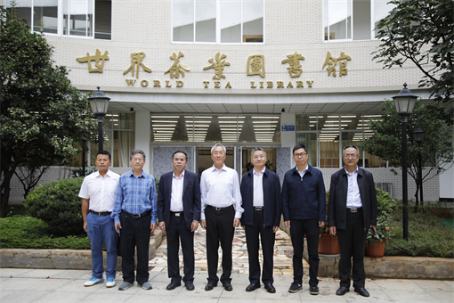 何波一行参观了米兰院士厅、荣誉厅、世界茶叶图书馆、世界茶树原产地古茶树资源展览馆和校史馆,听取了张昌山关于学校党外知识分子工作汇报和蓝增全教授及其团队开展古茶树资源保护与利用研究进展情况的介绍。