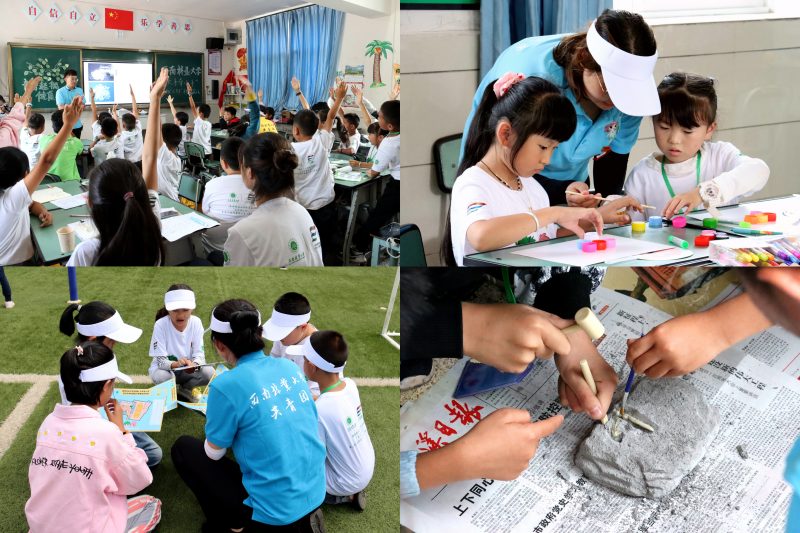 本次社会实践活动结合学校专业和环保类学生社团特色,以课堂教学与户外实践相结合的形式,科学设置了《动植物知识知多少》《时光印记-化石篇》《认识自然》《制作自然笔记》《人与自然和谐相处》《垃圾到哪去了》等多个生态文明科普课程。志愿者充分发挥所学专业知识,做到学以致用,以“理论讲解+游戏互动”的方式带领夏令营学员进行学习,志愿者将生动的讲解与丰富多样的游戏形式相结合,带领学员认识云南特色动植物,了解COP15大会相关知识,掌握生物多样性分类和垃圾分类知识。通过开展定向运动、垃圾作画、化石盲盒等活动,巩固理论学习成果,带领小朋友调动五感多角度认识大自然。为调动小朋友们的学习兴趣,特别制作了文具袋、扇子、马克杯、玩偶等西西&林林文创产品,对表现优秀的学员予以鼓励。在活动中以寓教于乐的形式引领小朋友亲近自然、了解自然、感悟自然,带领小朋友学习生物多样性知识,树立生态文明理念,增强环境保护意识。