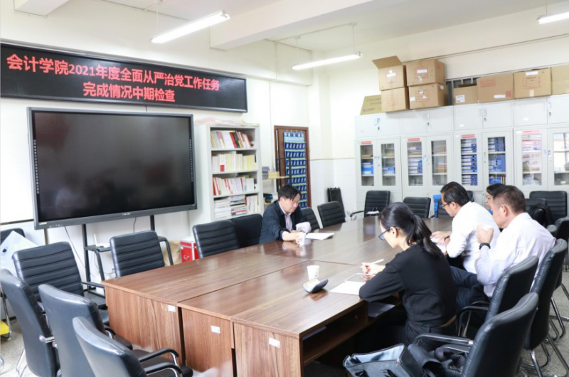 按照上级工作部署、学校党委工作要求和“年初布置、年中检查、年底考核”的工作思路和要求。7月23日,会计学院召开了2021年度全面从严治党工作任务完成情况中期检查会。学院党委副书记(主持工作)刘兴东代表学院党政领导班子向副校长彭志远汇报了学院2021年度全面从严治党工作中期完成情况。