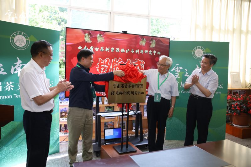 中国科学院昆明植物研究所孙汉董院士和云南省农业农村厅副厅长胡波共同为云南省古茶树资源保护与利用研究中心揭牌。