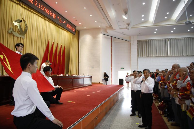 校领导先后为获得“光荣在党50年”纪念章的老同志、优秀共产党员代表、优秀党务工作者代表、先进基层党组织负责人代表颁发纪念章和奖状。新党员还为获得“光荣在党50年”纪念章的老同志敬献鲜花。