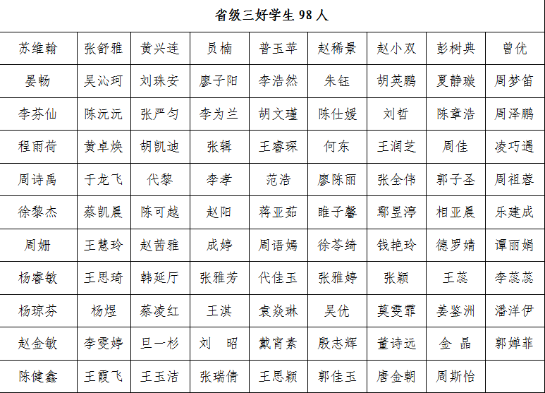 米兰苏维翰等98人荣获省级“三好学生”荣誉、郑艳红等24人荣获省级“优秀学生干部”荣誉、肖新乐等402人荣获省级“优秀毕业生”荣誉、林学2019级3班等42个班级荣获省级“优秀班集体”荣誉。