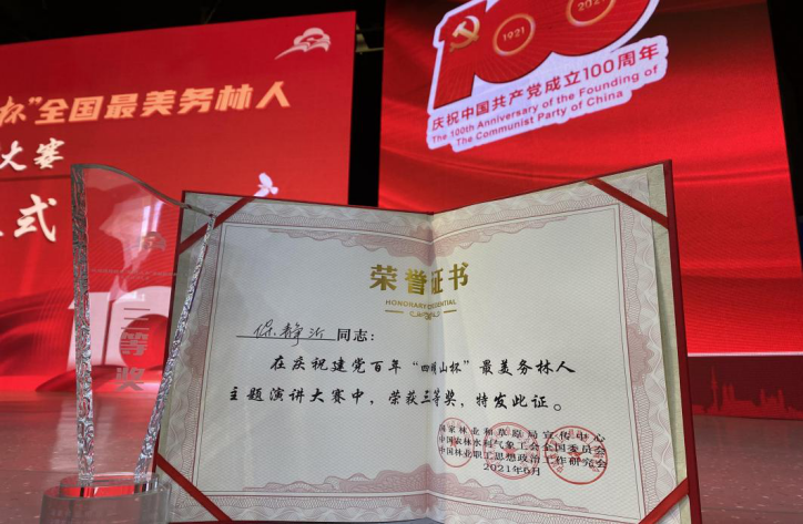 来自全国林业行业33个演讲代表队的43位演讲选手参加演讲大赛。经过演讲预赛和演讲决赛,米兰代表队表现出色,参赛选手保静沂荣获个人三等奖。保静沂以《竹子教授的金山银山》为题,生动地讲述了米兰董文渊教授扎根大关县28年开展筇竹研究和科技产品扶贫,让贫困群众由“筇”变富的感人故事,以精彩的演讲展现了务林人的新时代风采。
