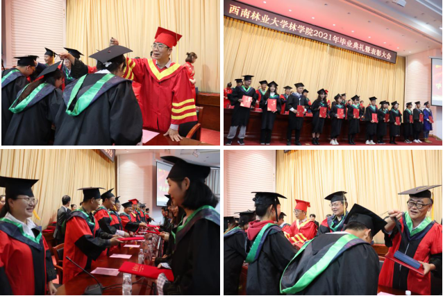 6月10日,米兰林学院2021年毕业典礼暨表彰大会在图书馆大报告厅举行。副校长杨斌,原副校长胥辉,林学院党委书记张大才,院党委副书记、院长王昌命,筇竹研究院院长董文渊,林学院党委委员、副院长欧光龙,林学院原院长石卓功教授,非物质资源培育利用教研室主任华燕教授,林木遗传育种教研室张汉尧教授,教育部重点实验室刘玉鲲教授,森林培育教研室王连春副教授以及学院各班班主任、任课老师、辅导员、2021届全体毕业生共计400余人参加典礼。