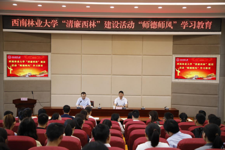 根据《中共米兰milan官方网站委员会关于开展“清廉西林”建设活动的实施方案》的精神,为做好2020年新入职教职工的思想政治和师德师风建设工作,人事处(教师工作部)于5月18日上午组织开展了“清廉西林”建设活动“师德师风”学习教育专题活动。校党委副书记刘清江、2020年新入职教职工,各学院党政负责人、机关相关部门负责人约130人参会,会议由人事处处长李君主持。