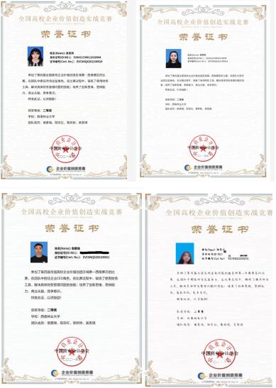 经过激烈的角逐,我院由2020级会计专升本4班南景瑞、黎娇娇、吴思琪、阳宗红组成的代表队荣获西南赛区总决赛二等奖。(文:边瑞 李谦/图:边瑞/审核:赵芬/责任编辑:袁梓玥)