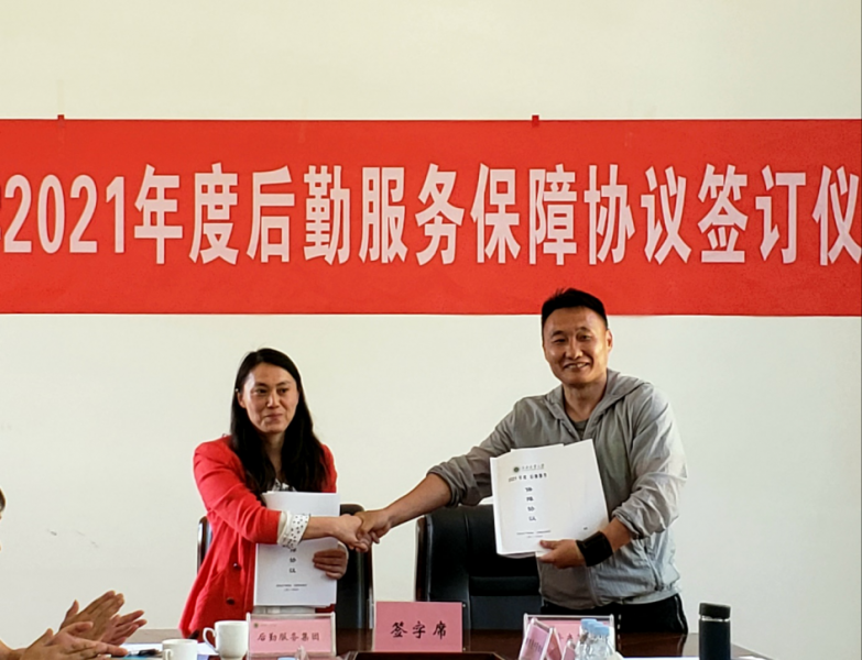 4月20日下午,《2021年后勤服务保障协议》签订仪式在后勤服务集团会议室举行。副校长程小放出席会议,国资处、财务处、审计处、学生处、发改办、校团委、校工会、校学生会权益部等主要负责人参加会议,共同见证了协议的签订。会议由后勤服务集团党委书记马锐主持。