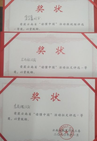 根据《关于2020年“读懂中国”活动评审结果的通知》(教关工委函〔2021〕2号),《让地球癌长出绿的教授》获教育部关工委最佳征文,《筇竹与人生》获教育部关工委优秀微视频,学校获教育部关工委优秀组织奖。