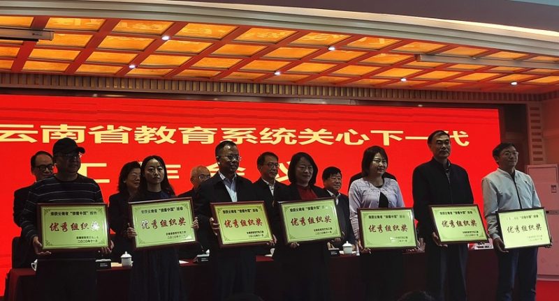 会议还通报表彰了2020年省教育厅、教育部关工委“读懂中国”评审结果,颁发了省级的证书和奖状。本次活动经教育厅初评、教育部评审等程序,学校推荐的征文《让地球癌长出绿的教授》《生命不息 初心不改 奉献不止》获省级一等奖,《世代书香 育才育人》《为向上之春播撒阳光的人》获省级二等奖,视频《筇竹与人生》获省级一等奖,《绿色的希望》《脱贫路上有我》《永不停歇的脚步》获省级二等奖,学校获省教育厅关工委优秀组织奖。