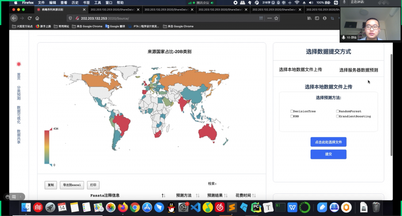 “新冠病毒分析可视化数据共享平台”能够基于NextStrain构建新冠病毒进化树,采用机器学习方法在几秒内完成新冠病毒序列分类,识别准确率达到0.99以上。同时,能够对病毒扩散、不同特征分布、变异以及变异相关特征做可视化分析,该平台能够为新冠病毒防控提供有效支撑。评委一致认为,该作品已经完全实现了一套公益性新冠病毒分析可视化数据共享平台所应具有的功能,建议与相关部门合作,推动成果转化应用。
