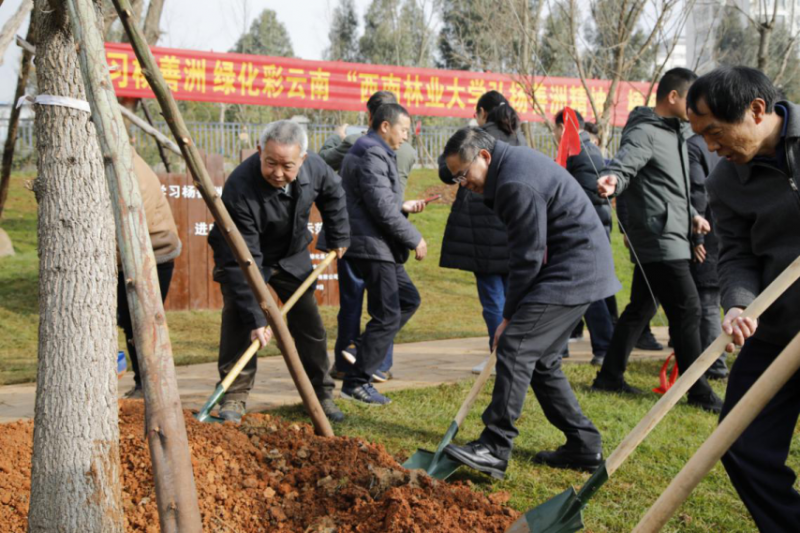 1月19日,学校在秋海边举行“学习杨善洲 绿化彩云南 米兰milan官方网站弘扬善洲精神”植树活动。校长郭辉军,副校长程小放,云南省杨善洲绿化基金会理事长王德祥、副理事长王国亮,云南山河园林股份有限公司董事长黄静、副总经理张波,云南省杨善洲绿化基金会秘书长安俊义、副秘书长程维义、项目官员和雪屏等出席活动。学校办公室(党委巡察办)、基建处、后勤服务集团等相关部门负责人和工作人员参加了植树活动。活动由程小放主持。
