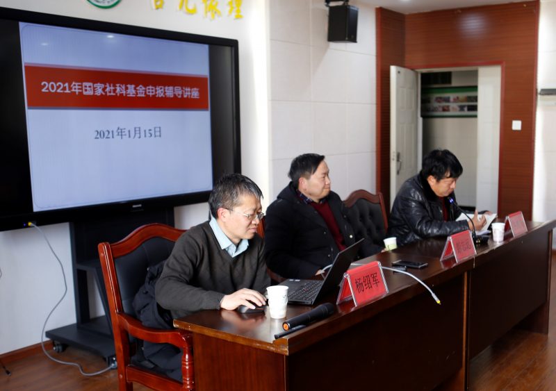1月15日下午,经管楼521会议室座无虚席,社会科学管理办公室采取以会带训的方式举办2021年度国家社科基金项目申报辅导讲座。云南大学社会科学处处长杨绍军教授应邀来校传经送宝。副校长彭志远作动员讲话,他鼓励广大教师要重视文科研究与基金申报工作,争取完成既定的目标,为学校发展添砖加瓦。