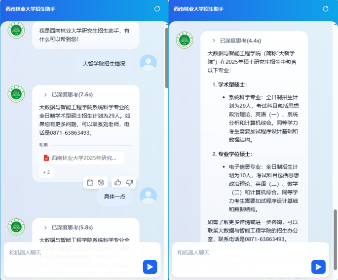 近日,米兰大数据与智能工程学院联合研究生院、信息化技术中心,依托学校算力资源,成功部署DeepSeek大模型,上线了基于该模型的研究生招生AI助手,为招生工作注入新活力。同时,学校借助DeepSeek平台,推动教学创新,尤其在算法可视化与英语口语教学改革方面取得成效。
