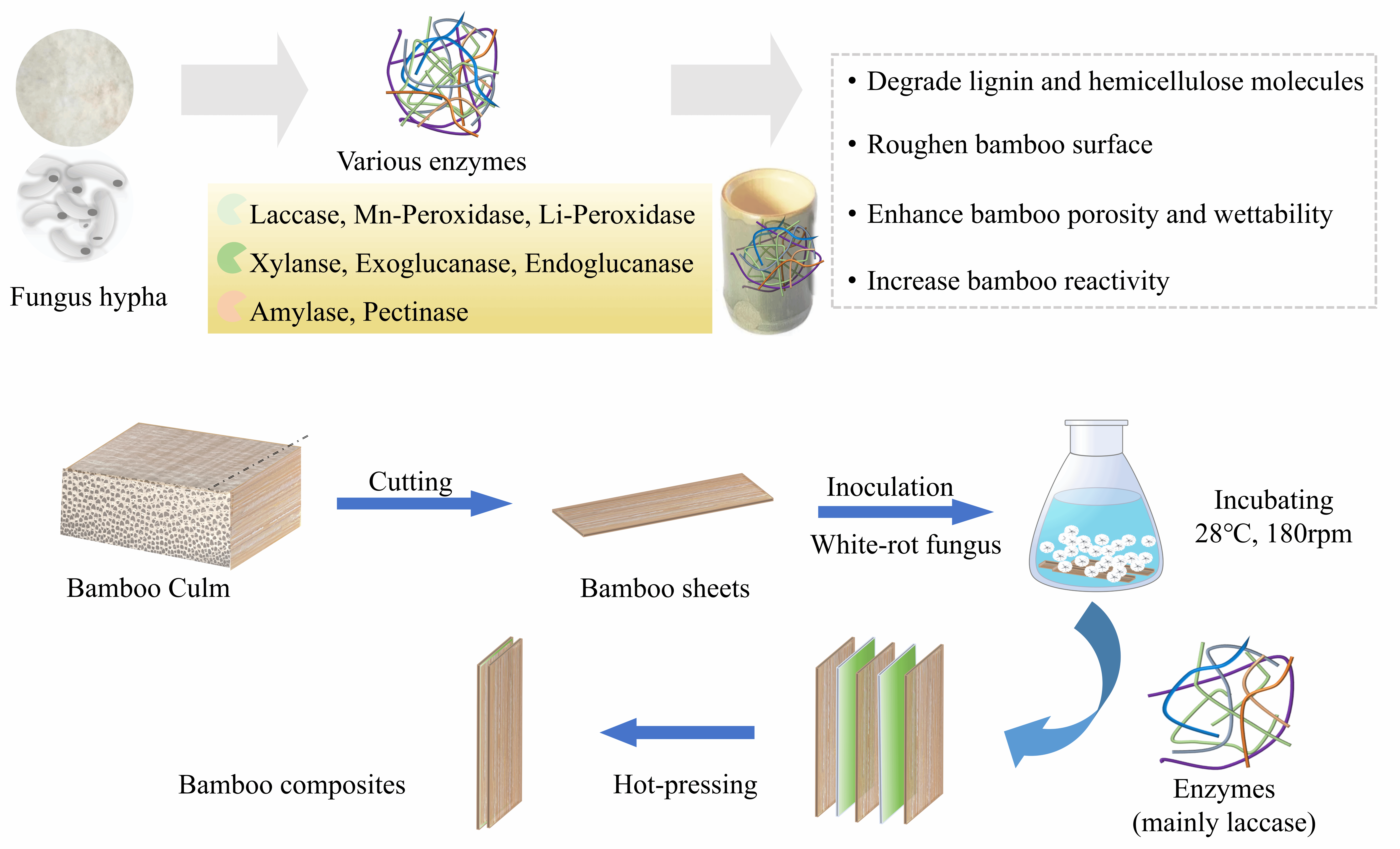 在科研创新的赛道上,团队瞄准西南特色木竹材的高值化利用,展开系列前沿探索。主持国家自然科学基金、云南省科技重点项目等10余项,在《Industrial Crops & Products》(中科院一区Top期刊)、ACS系列国际期刊发表高水平论文50余篇,其中多篇成果登上期刊封面。针对云南特有的巨龙竹,团队揭示了白腐真菌作用下木质素、半纤维素的降解路径,开发出“酶菌协同改性-热压复合”新技术,显著提升竹材复合材料的耐候性与力学性能。这些成果不仅为西南林区木竹资源“变废为宝”提供了技术支撑,更在《可持续化学与工程》等国际平台上发出中国林业科技的强音。
